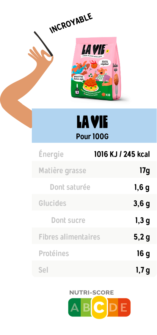 Des boulettes 100% végétales qui n’ont rien à envier à leurs homologues carnées. Riches en protéines, en fibres et sans OGM ! De quoi avoir tous les feux verts sur Yuka.