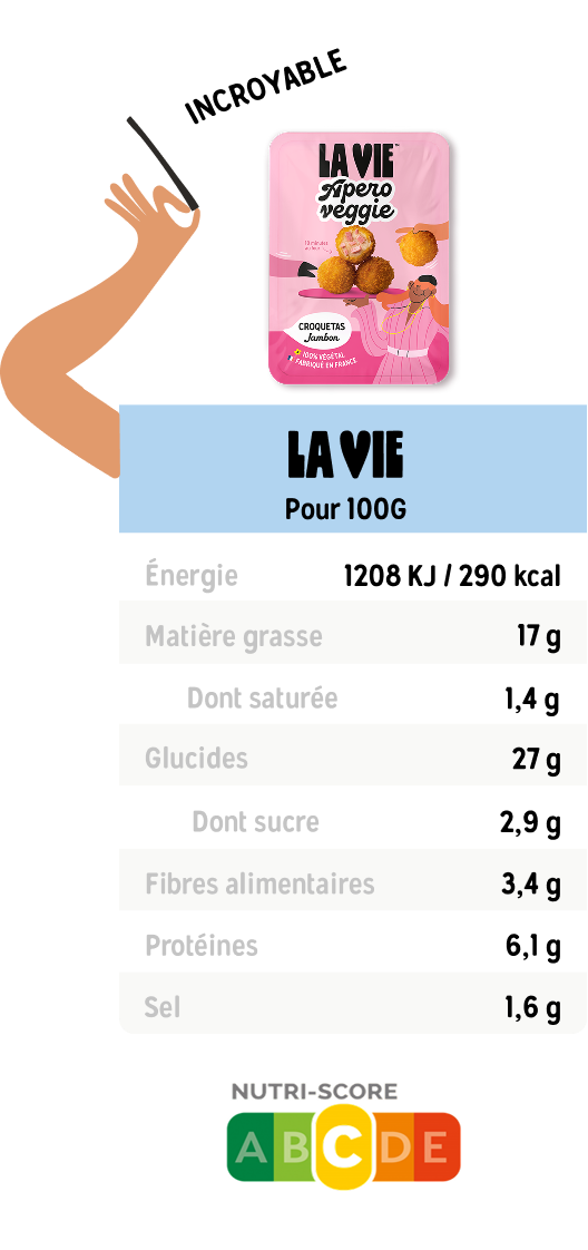 Prendre l’apéro c’est cool, le prendre avec des produits meilleurs pour la santé, la planète et les cochons c’est encore mieux. Les croquetas La Vie c’est :