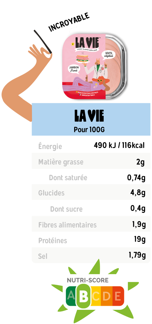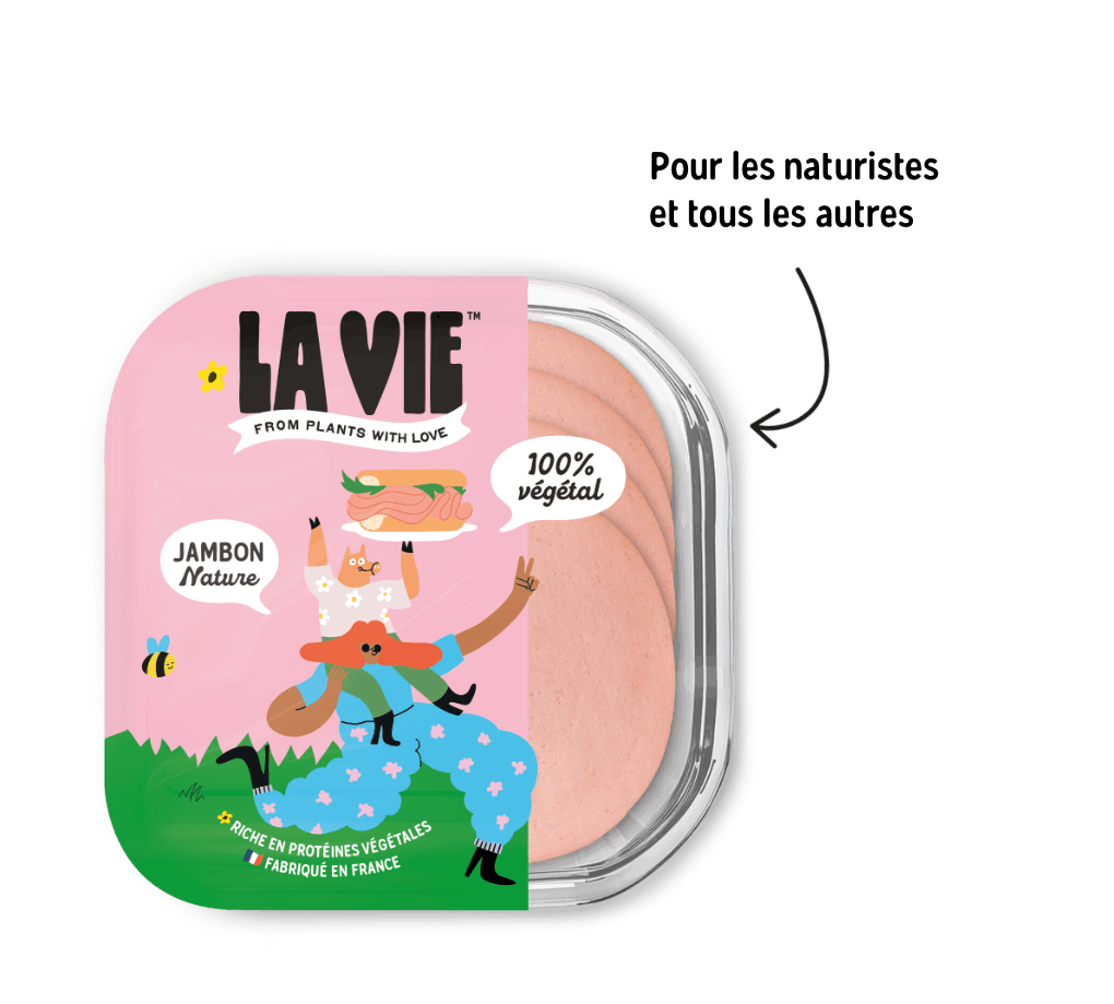 Il est enfin là : le premier jambon végtal source de protéine, sans additifs de texture, et surtout, super méga trop bon. A utiliser chaud en croque monsieur ou sur une Régina, froid dans un jambon-beurre, ou tiède si vous êtes chelou.